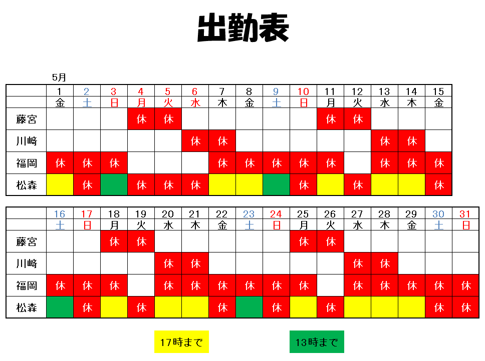 | 月 | 火 | 水 | 木 | 金 | 土 | 日 | 祝 | |