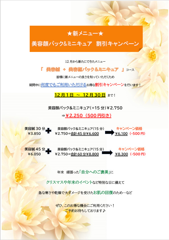 美容鍼新メニュー&割引キャンペーンのお知らせ